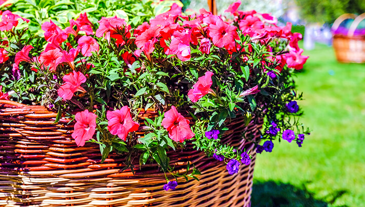 Both wicker and metal baskets make for great planters. Simply line the basket with some moss before adding your potting soil. Baskets allow for easy drainage, and their handles make them versatile. Hang them from your porch cover or decoratively arrange them together in the corner of your patio.